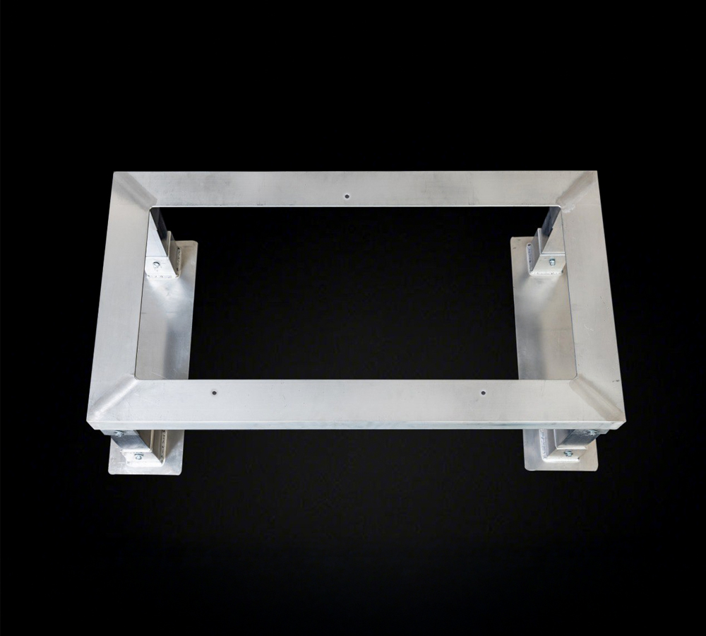 - Constructed with 4″ x 3″ x 1/4″ angle top frame, 3″ x 3″ x 3/16″ leg tubes, and two 28″ x 8″ x 1/4″ mounting plates.