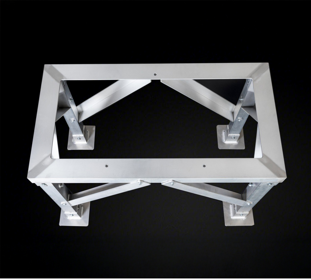 - Four 8″ x 8″ x 1/4″ mounting plates for maximum load distribution and stability.