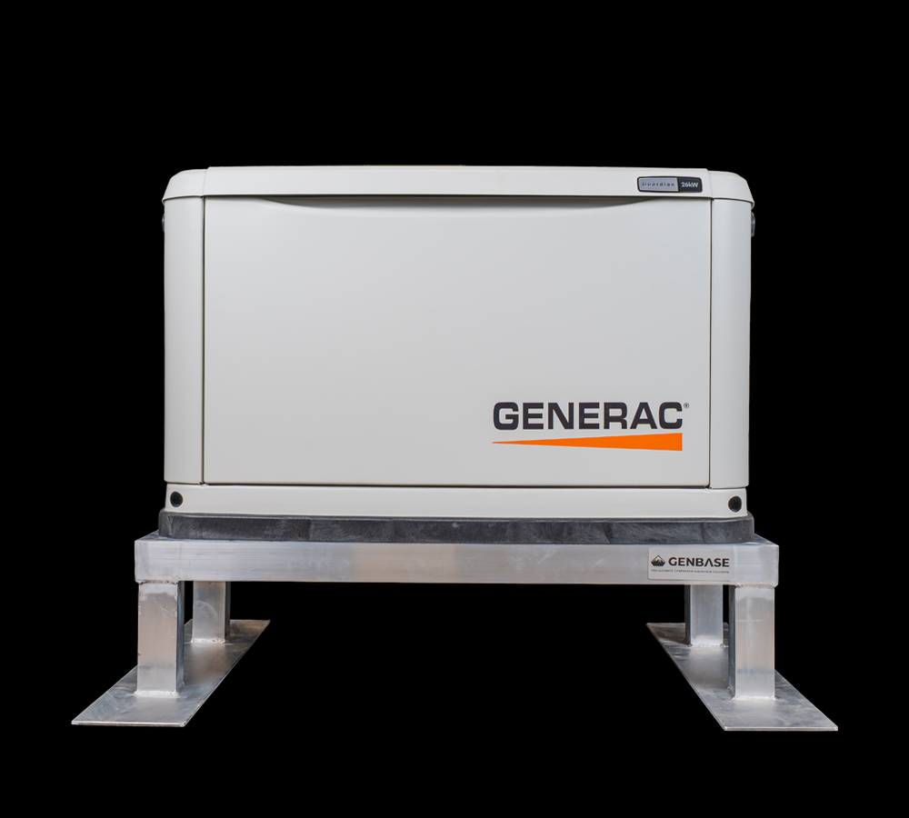 RoofTop Aluminum StandsWithout Spring IsolatorsEnsure a secure and stable rooftop installation for your generator with the Rooftop Aluminum Base for Generators Without Spring Isolators. Designed for 10-26kW Generac, as well as select Kohler and Briggs & Stratton standby generators, this heavy-duty aluminum stand provides reliable support and elevation for optimal generator performance in rooftop settings.